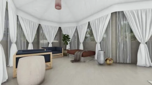 Very custom. Luxury glamping tents aren’t limited to one size or one layout. They can be designed around what you want the space to do, and what your site can support.