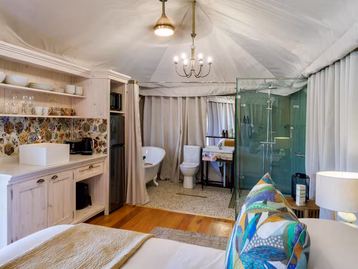 Welcome to your serene escape under the stars! Our self catering luxury tent perfectly blends the beauty of nature with modern luxuries.
